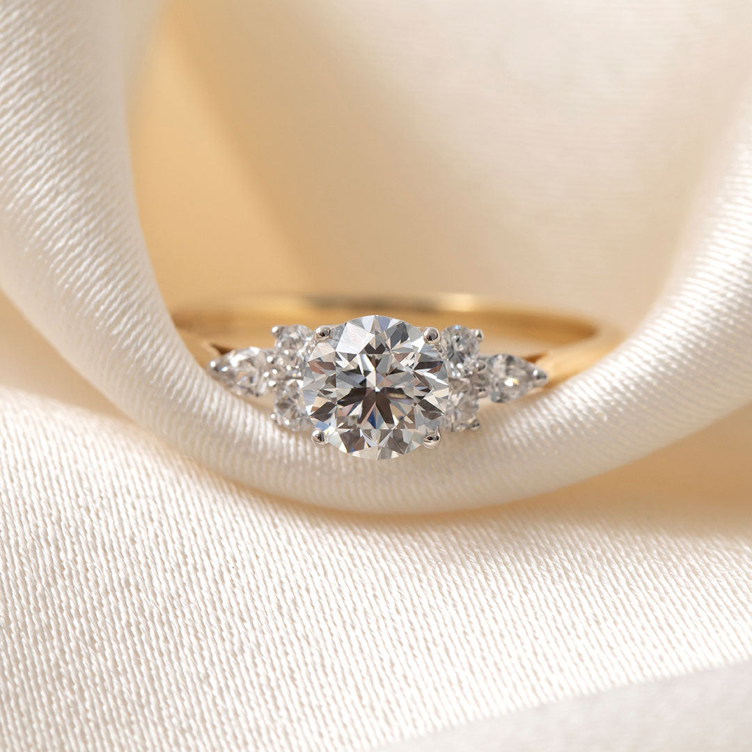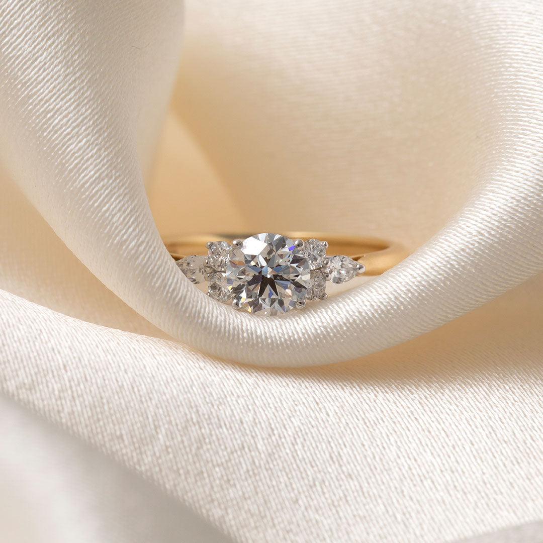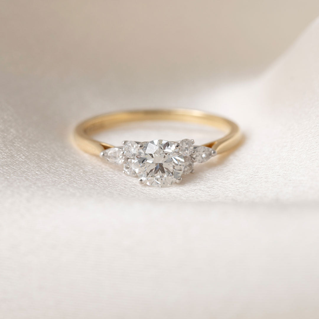 The Gear Jewellers Nyla ring sparkles with a dazzling 0.70ct round brilliant cut diamond at its heart, flanked by a charming lineup of side stones that add extra sparkle, making our Nyla Collection unique.
