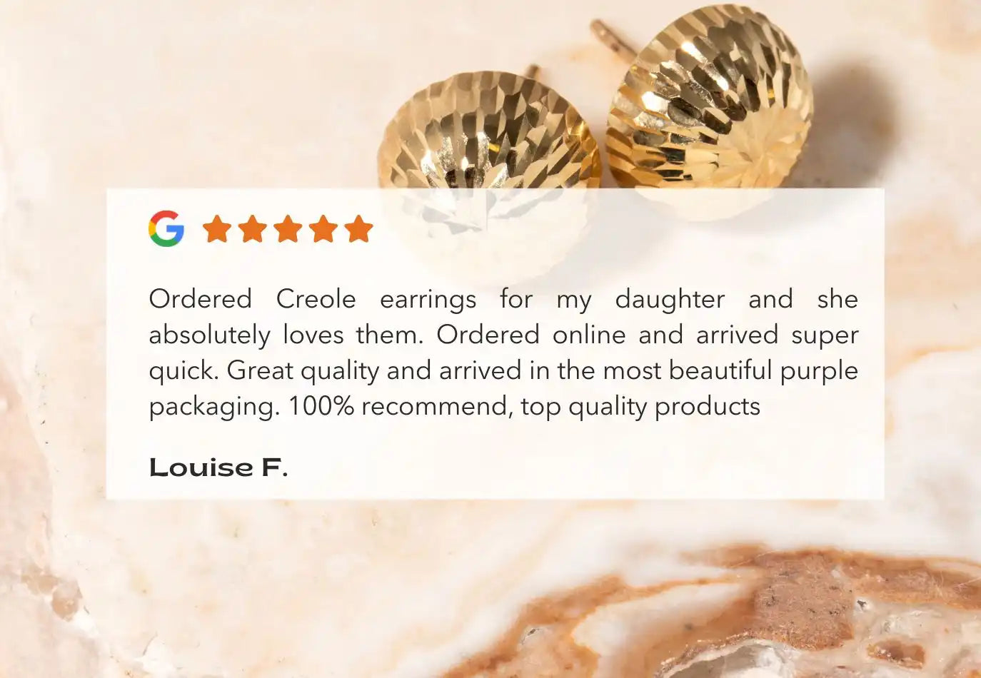 The glimmer drop huggie earrings and gold huggie earrings, that I purchased, are of beautiful quality and exactly as they appear on the website. The service is very prompt.- Catherine