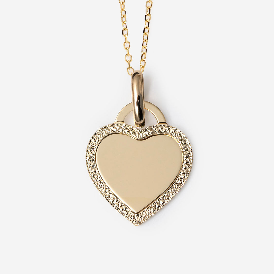 Delicate 18ct gold heart necklace featuring an intricate patterned design. The timeless heart pendant hangs gracefully from a fine chain, perfect for special occasions. A versatile piece that complements any style.