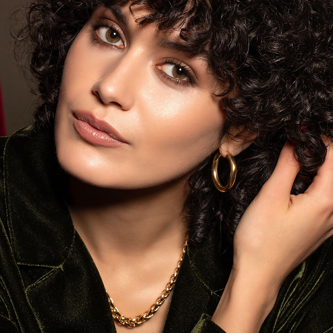 Discover the perfect complement to any outfit with our collection of gold hoop earrings. From simple and sleek to bold and eye-catching, there's a perfect pair for everyone – whether you're running errands or dressing up for a night out.