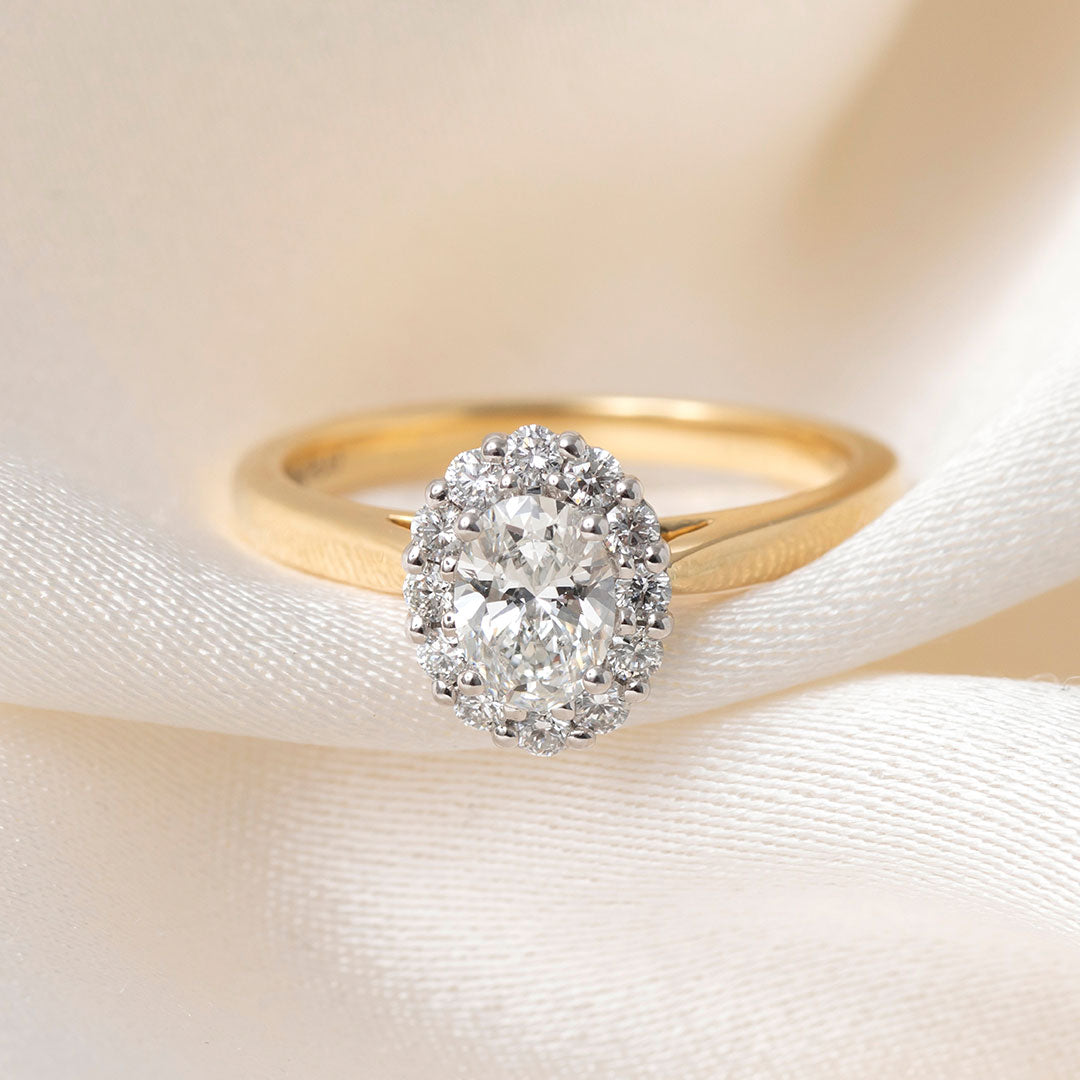 Oval Halo Diamond Engagement Ring in 18ct Gold