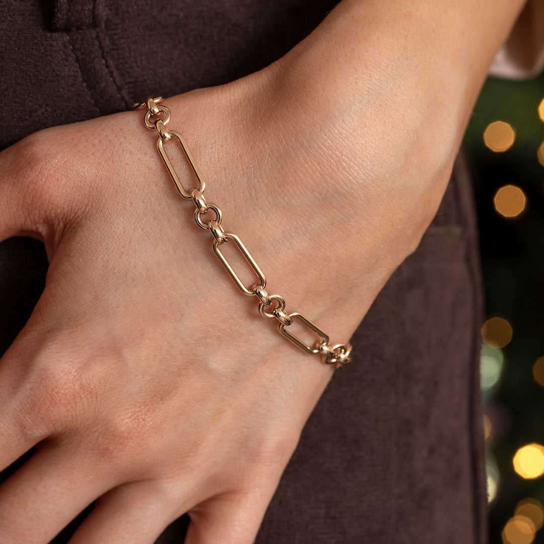 This 9ct gold bracelet combines classic and modern design with its bold paperclip links.