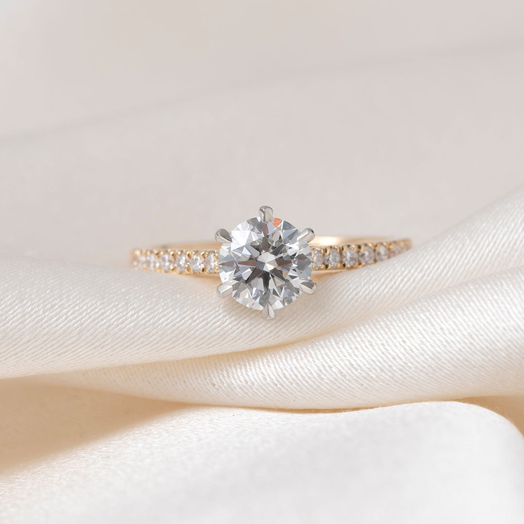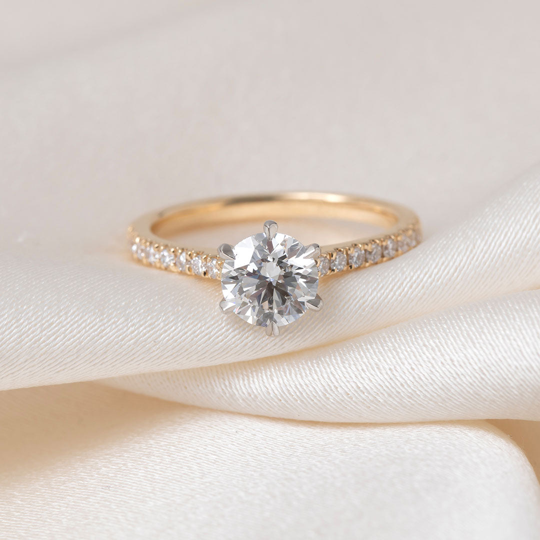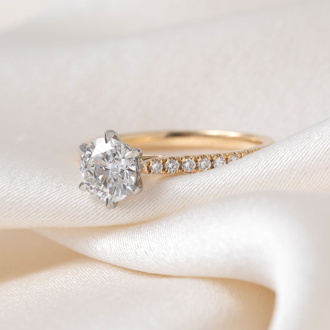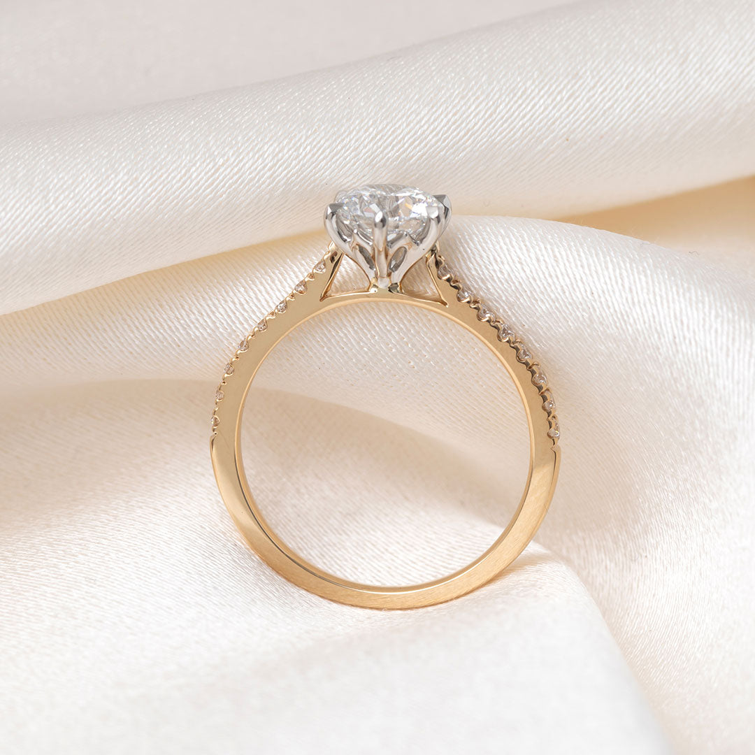 Gear Jewellers lab diamond engagement ring. 6 claw setting with shoulder diamonds.