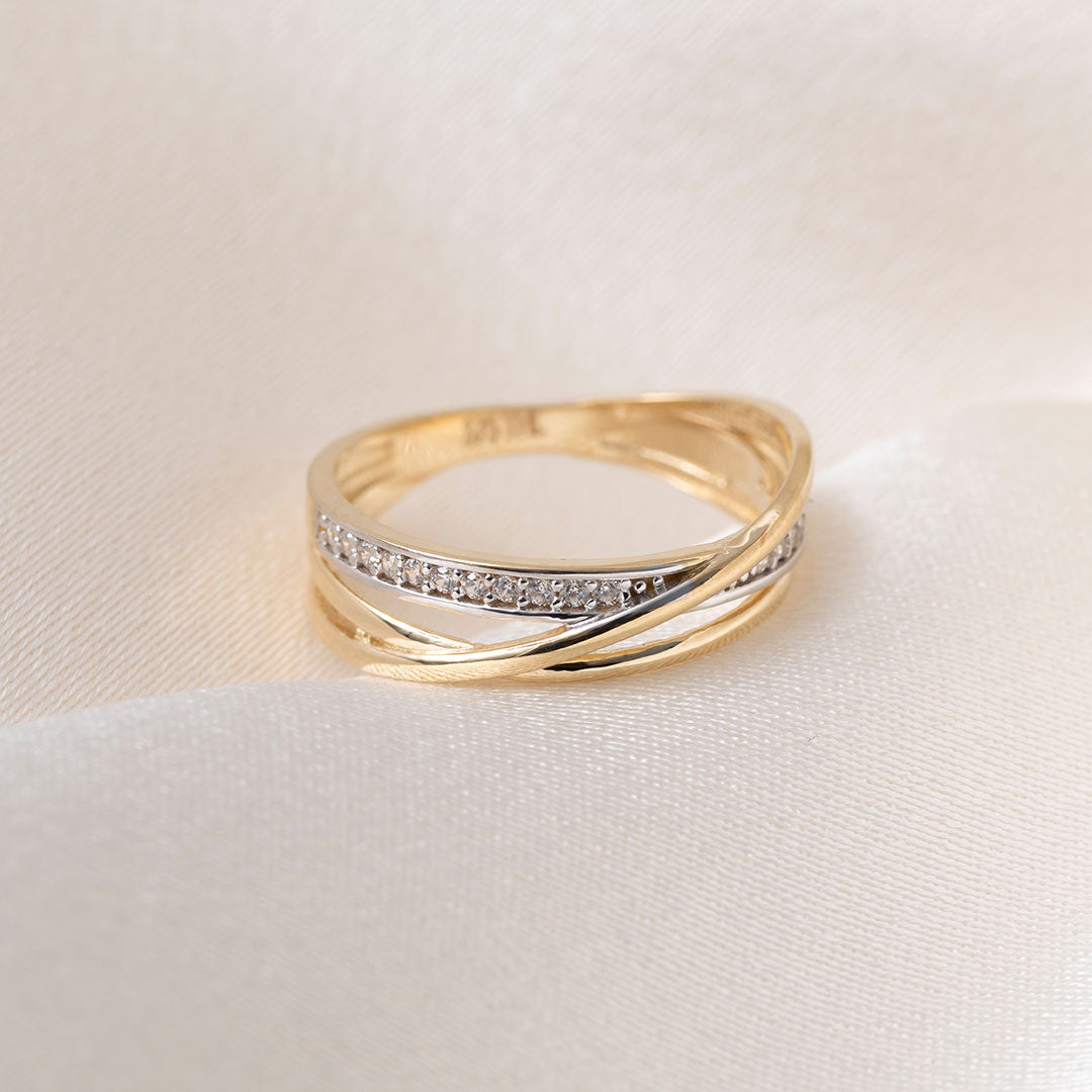 Elegant 9ct gold crossover ring adorned with sparkling zirconia. This timeless design features a graceful crossing band that catches the light beautifully, making it perfect for everyday wear or special occasions.