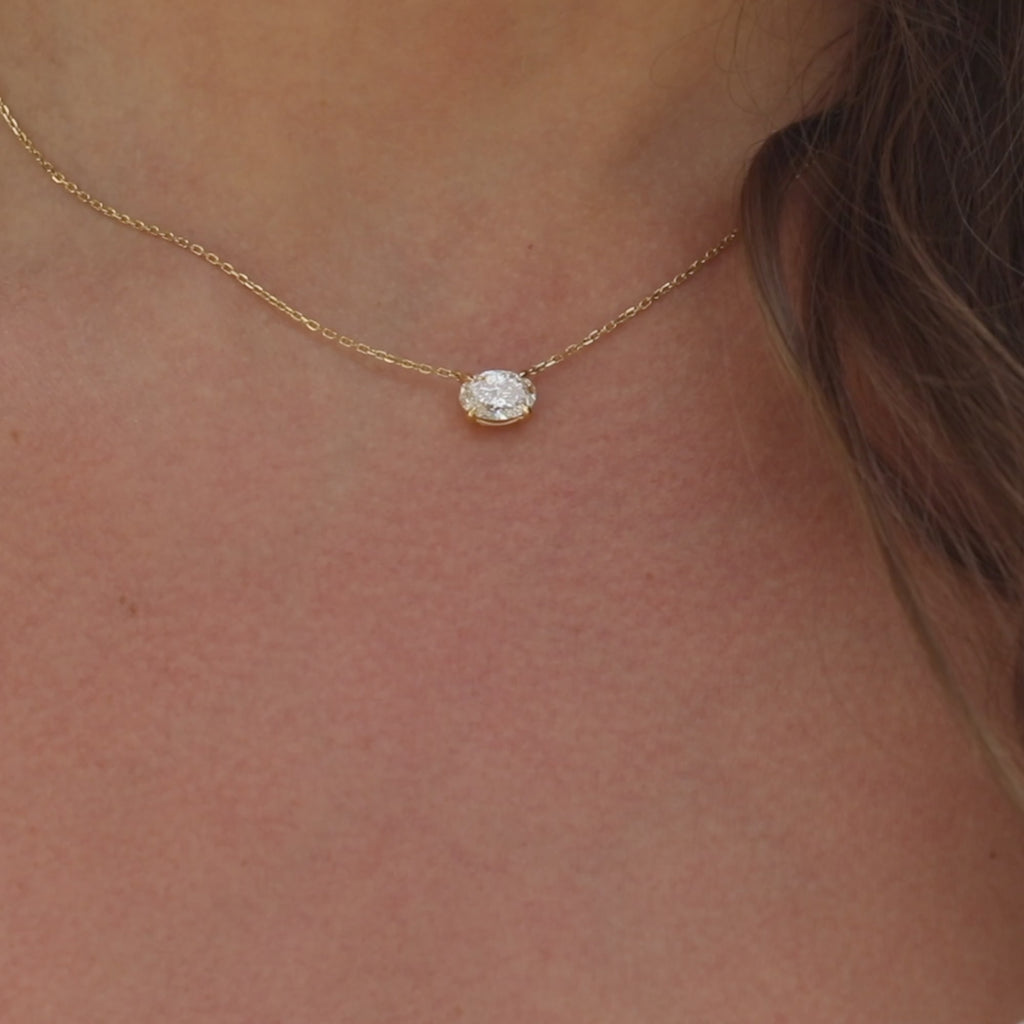 This 18ct gold necklace features a 1.50ct lab-grown diamond, suspended delicately from a fine chain. The diamond is set in a classic four-prong mount, allowing its brilliance to shine through with every movement.